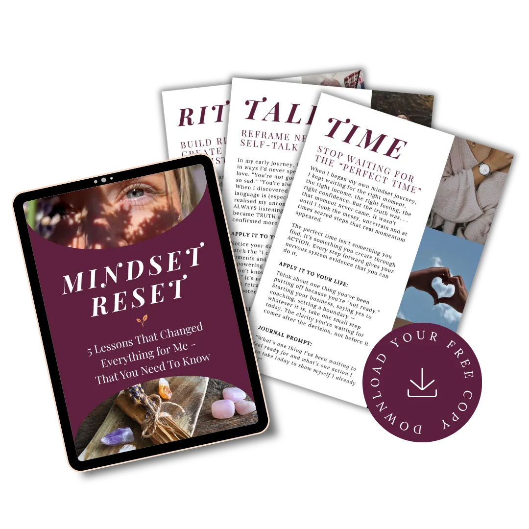 The Mind Cheat Sheet is your pocket-sized guide to instant mindset shifts. Inside, you’ll find quick, actionable exercises you can use ANYTIME. — whether you have one minute between meetings or an hour to reset and refocus.